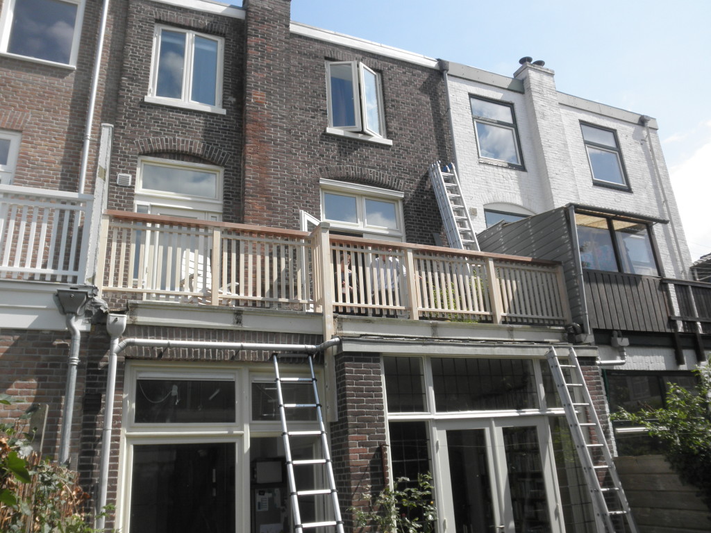 Nieuwe ramen van buitenaf gezien en het oude balkonhek